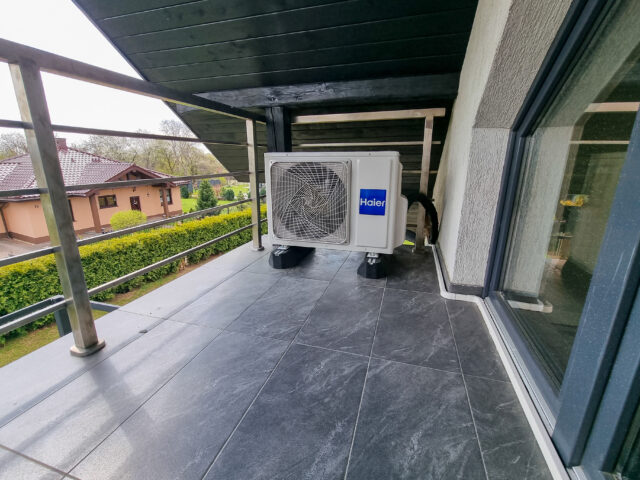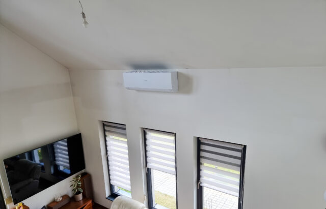 Klimatyzator biały a jednak wyróżniający się? Haier Flexis Plus! Zamontowany w salonie z antresolą będzie chłodził w lato i grzał w zimę. Jednostka z klasą energetyczną A++ sprawdzi się w każdych warunkach. Montaż w estetycznych brązowych korytach nie rzuca się w oczy.