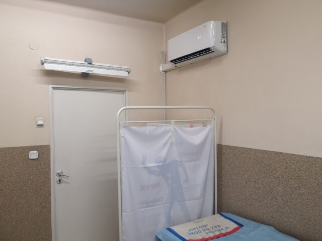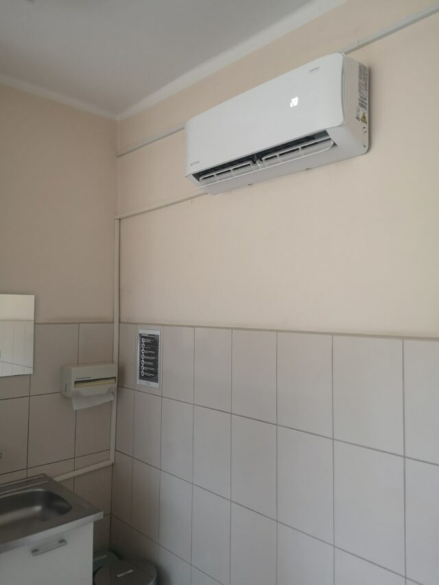 Ostatnia realizacja to zapewnienie komfortu termicznego pacjentom oraz personelowi lokalnej przychodni. Inwestor zdecydował się na trzy osobne jednostki Rotenso Imoto w systemie split. Jednostki te pozwalają zarówno chłodzić jak i grzać pomieszczenie w temperaturach dochodzących do -22°C. Instalacja o długości 19 metrów została położona w estetycznych korytach. W jednej z jednostek dla zachowania estetyki zastosowano pompkę skroplin.